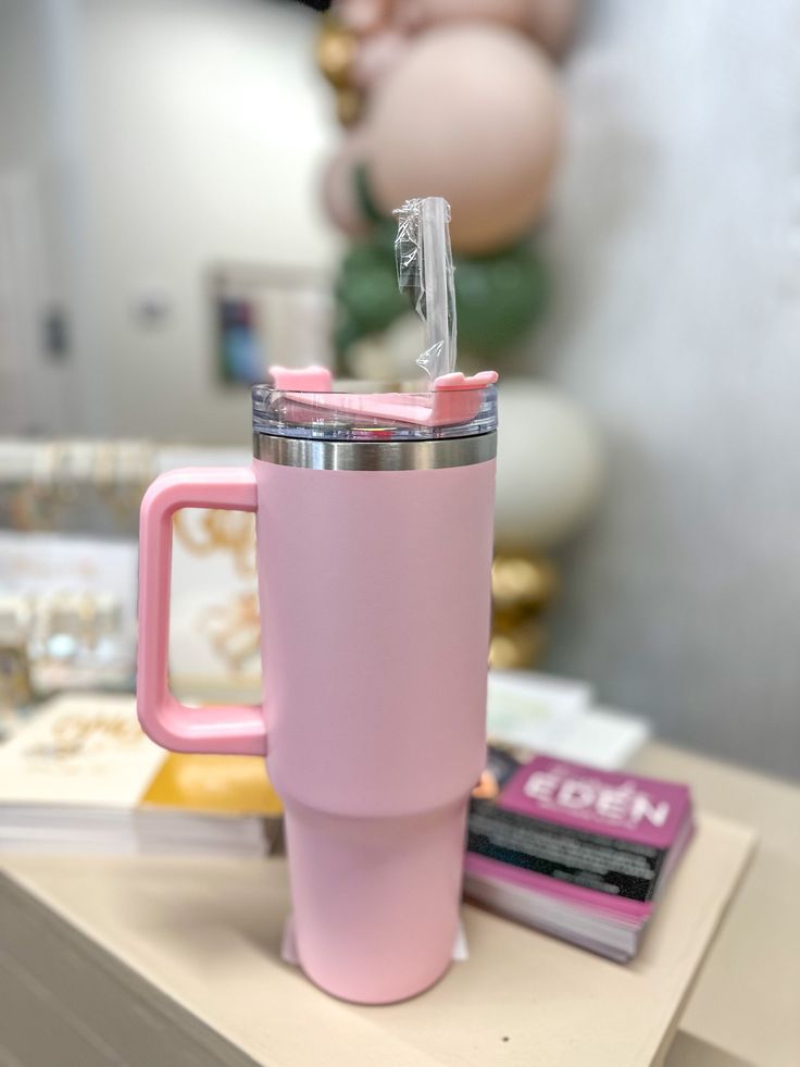 Sip your favorite drink all day with this sleek 40 Oz Stainless Steel Tumbler — featuring a comfy handle, leak-proof lid, and straw. Keeps drinks hot or cold for hours, perfect for travel, office, gym, or home.